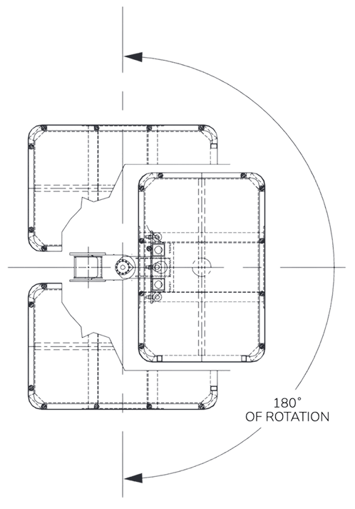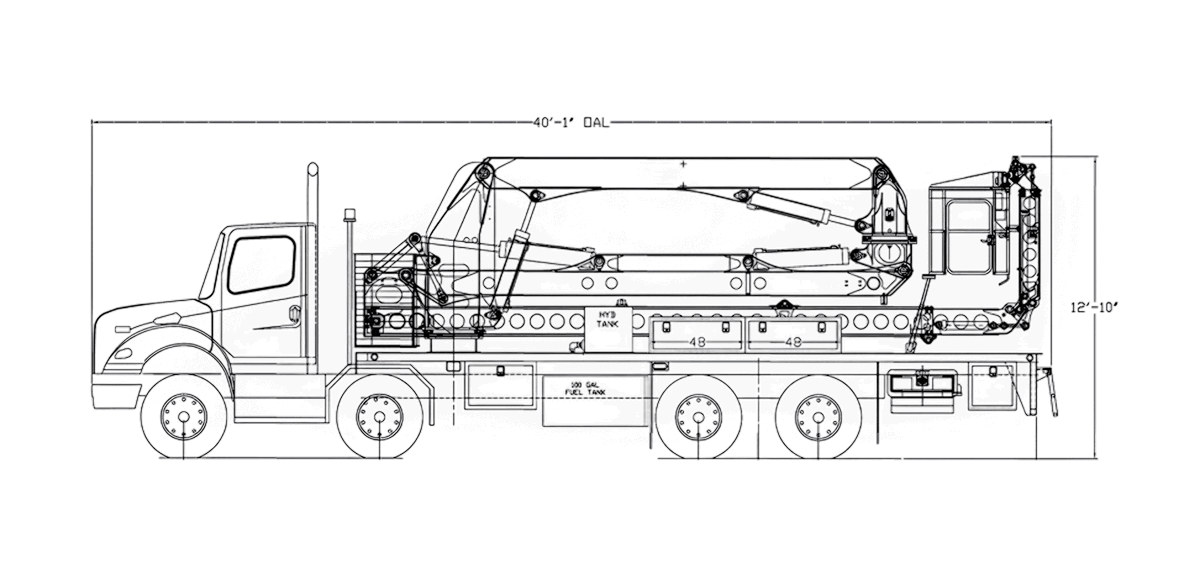 Aucun stabilisateur n’est requis et tous les contrepoids demeurent à l’intérieur du châssis du camion. Nouvellement redessiné, le contrepoids mobile est installé sous la plateforme du camion et s’active du côté opposé à celui où est déployée l’Aspen A-62. En mode transport, le contrepoids demeure au centre du camion pour assurer une meilleure tenue de route. Un caisson de torsion et des verrous aux essieux hydrauliques unissent le châssis aux essieux du camion et permettent au véhicule de se déplacer lorsque l’unité est complètement déployée.