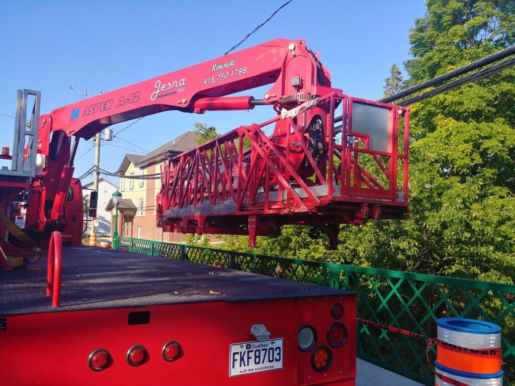 La conception de l’équipement avec ses deux tourelles rotatives ainsi que des bras articulés permettent à la passerelle de se déployer d’un côté ou de l’autre du camion pour accéder à pratiquement toutes les structures. Vous aurez accès à des endroits qu’une passerelle à tour classique ne pourra pas atteindre. À ce titre, l’Aspen A-62P est véritablement dans une ligue à part!